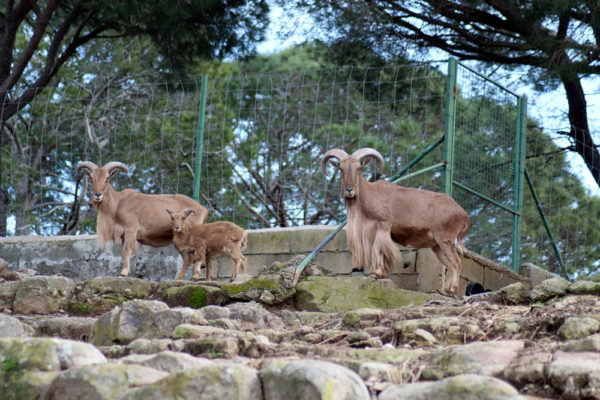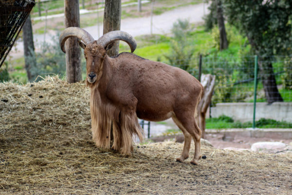 Le Mouflon à manchette est reconnaissable grâce à la couleur fauve clair de son pelage court ainsi qu’aux grandes manchettes qui ornent ses pattes avant.