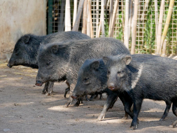 Le Pécari à collier est le plus petit des trois espèces de pécaris. Il s’agit d’un animal robuste et massif, ressemblant à un petit sanglier, mais avec une queue plus courte, un groin non ossifié. Ses défenses supérieures (canines) pointent vers le bas.